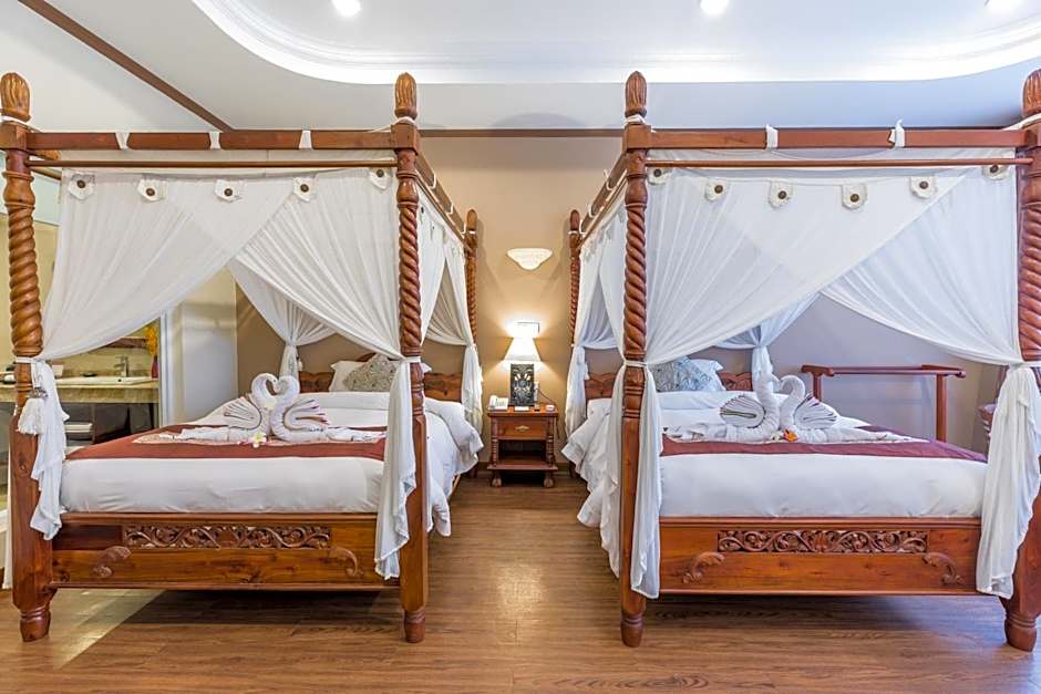 La gamma Deluxe comprende camere con vista piscina, vista giardino, balcone, twin e altre configurazioni, con diverse opzioni che possono ospitare fino a 4 adulti e 3 bambini. Le camere offrono comfort moderni come aria condizionata, insonorizzazione, balcone, vasca con articoli da toilette gratuiti e vista sul giardino o sui punti di interesse.